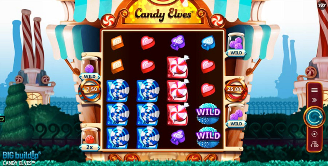 Candy Elves is literally packed with bonus features, and you wouldn’t find some of them elsewhere. BIG BuildUp is what we mean. This fiery system lets the punter stack certain symbols during the regular game, which, in turn, allows for additional goodies during the bonus game.